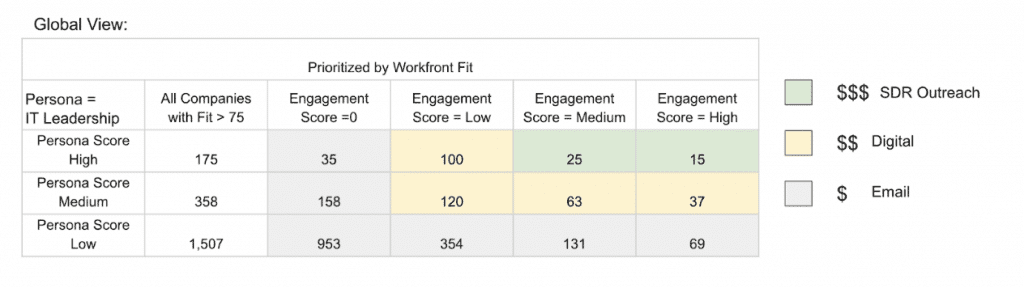 The final consideration is whether the right person within the right account is actually prepared to engage. This is best assessed by evaluating their interactions with your sales and marketing efforts. Marketing engagement scores provide valuable insights into a prospect’s readiness by tracking their level of interaction with content, campaigns, and direct outreach. First-party intent can be very informative here too by showing not only the companies, but in the United States often the individuals who are actively investigating your site. By combining persona Fit with engagement scores, companies can more effectively determine which leads in their database are most likely to convert and which new prospects are primed for outreach.